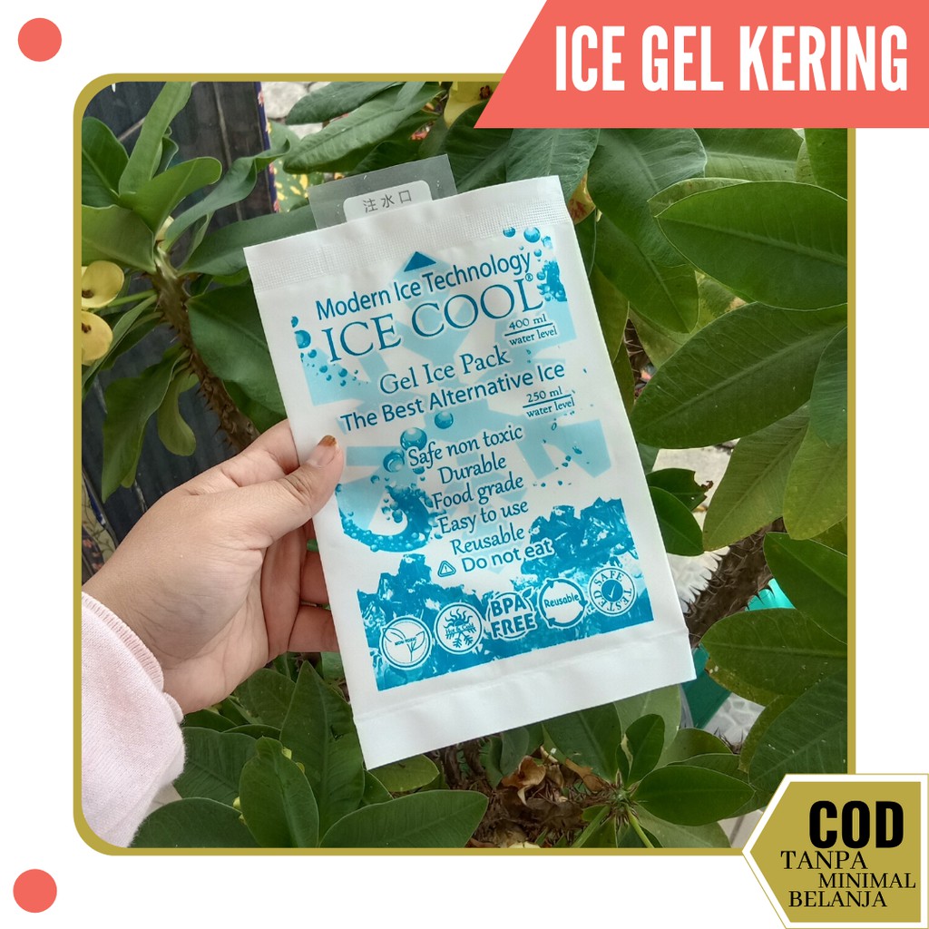 "SPESIFIKASI : kode >> ICE GEL LEMBARANUkuran : 12 x 18.5 cmBentuk : SerbukTahan Dingin : 7/8 jamTahan Panas : 2/ 4 jamDapat digunakan 6 bulan Bisa digunakan untuk membantu makanan-minuman tetap dingin ataupun panas.Tahan lamaDapat dipakai ulangAman dan tidak beracunCara penggunaan ice gel pada cooler bag UNTUK DINGIN:1. Buka bagian atas atau mulut kantong ice gel2. Isi ice gel dengan air bersih sesuai keinginan, bisa 250 ml air atau 400 ml air2. Setelah terisi air, tutup kembali selang air nya ( pastikan sudah tertutup dan tidak bocor )3. Goyang2kan agar serbuk dan air tercampur rata4. Ice gel siap di freezerPERHATIAN:- Jika kemasan ice gel pecah tidak boleh dipergunakan lagi.- Ice gel tidak boleh dimakan.- Jangan menghangatkan ice gel di dalam microwave#icegel #icecool #icegelmurah #icegelkecil #jualicegel #esgelmurah #esuntukasi #pendinginasi #jualcoolerbag #perlengkapanmenyusuimurah #grosiricegelm