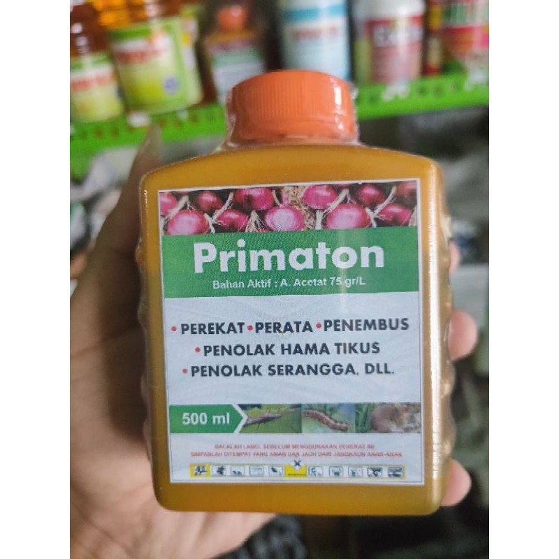 bahan aktif: A. Acetat 75 gr/lTERBARU PEREKAT BERBAU HARUMPrimaton adalah perekat perata penembus sekaligus penolak hama tikus dan serangga. Primaton mempunyai bau yang sangat harum sehingga tikus dan serangga tidak mau mend